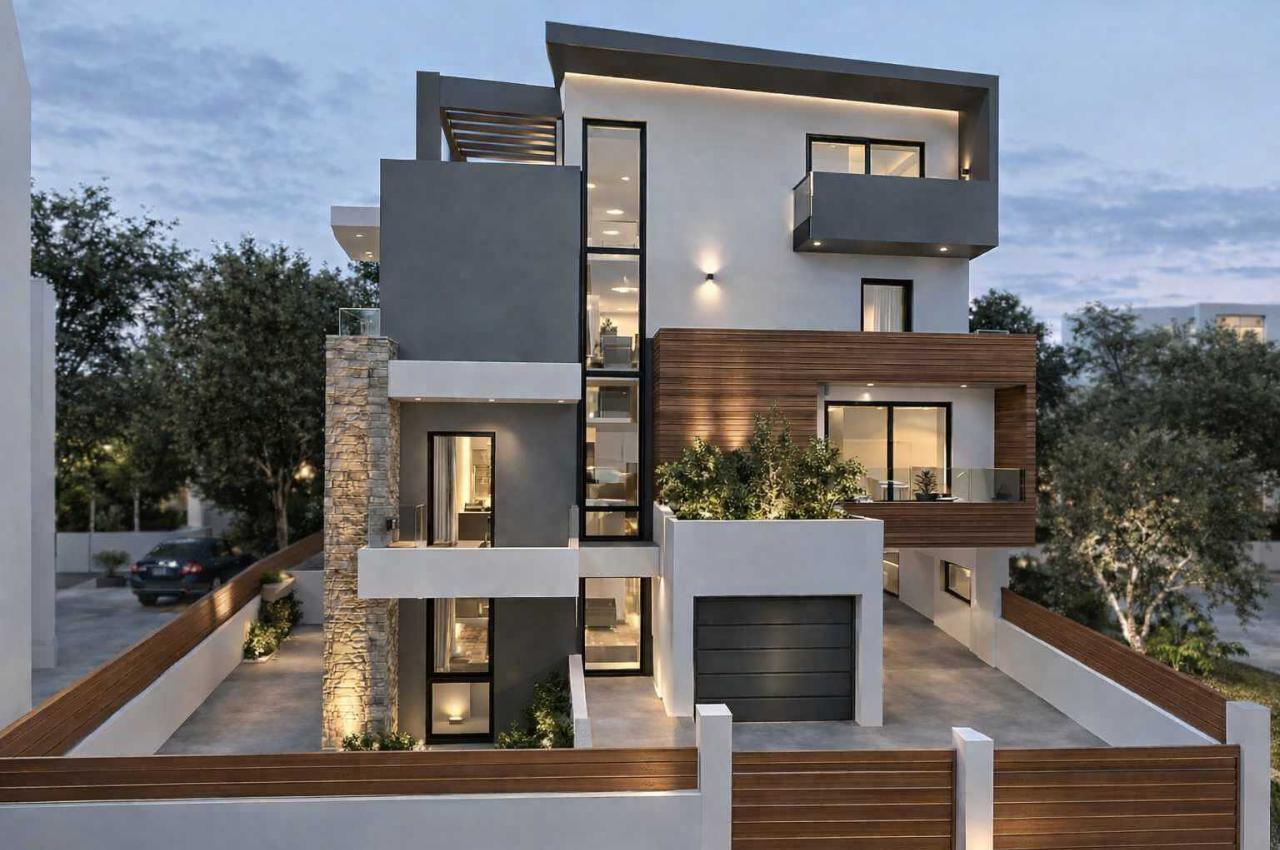 Το κτίριο είναι ένα κτίριο κατοικιών με καθαρές γεωμετρικές γραμμές και έντονη αρχιτεκτονική σύνθεση όγκων. Η όψη συνδυάζει διαφορετικά υλικά και υφές, όπως λευκό σοβά, σκούρες επιφάνειες, επένδυση ξύλου και φυσική πέτρα, δημιουργώντας μια ισορροπημένη αλλά δυναμική αισθητική. Τα μεγάλα ανοίγματα επιτρέπουν άφθονο φυσικό φως στο εσωτερικό και ενισχύουν τη σύνδεση των εσωτερικών χώρων με το εξωτερικό περιβάλλον.